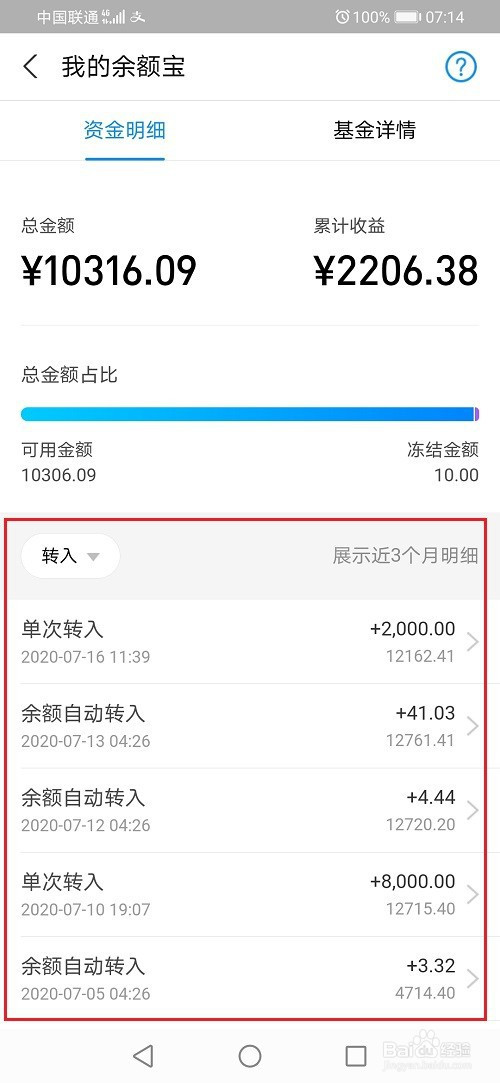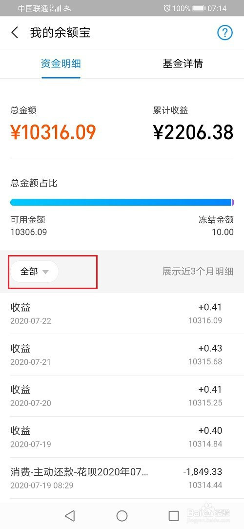 第三步在余额宝资金明细中,点击全数