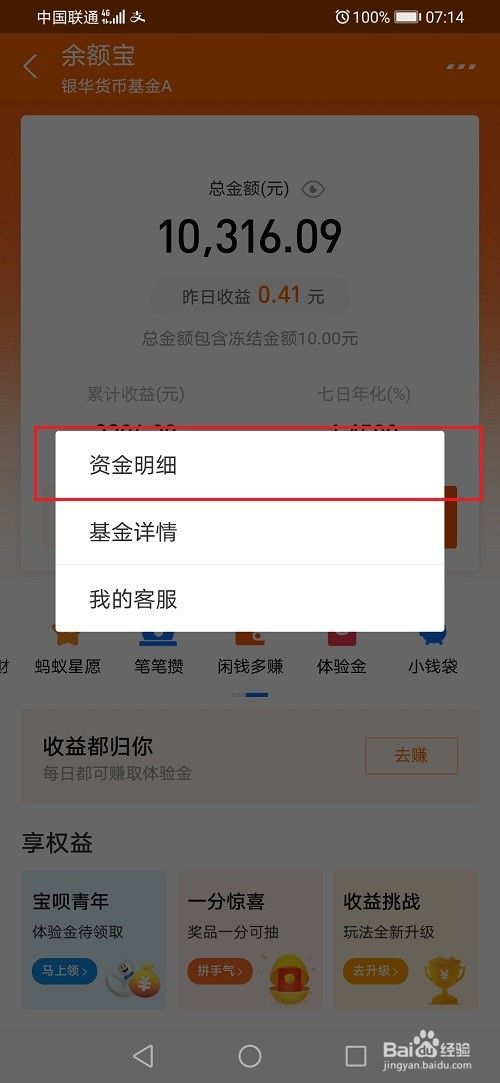 第二步点击三点图标之后,选择资金明细