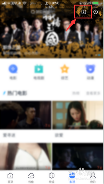 切换到下方的“影视”选项,点击右上角处的“标的目的下箭头”下载按钮。