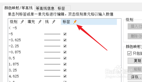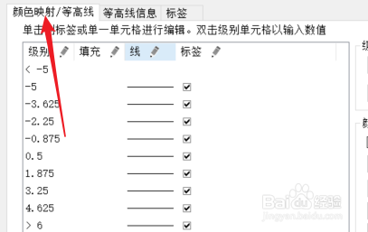 1. 双击口角等高线图的画图区域。2. 选择颜色映射选项卡。3. 点击标签选项处的按钮。4. 打消“只显示本家儿要级别”的选中后,选择“埋没所有”。5. 点击确定,即可查看结果。