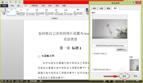 步调5:返回到“填充结果”对话窗后,我们再点击“确定”按钮,这样就将本身喜好的图片设置为word文档布景了。如图所示: