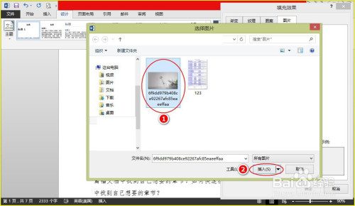 步调4:在“选择图片”对话窗中,我们选中本身要设置为布景的图片,再点击“插入”按钮。如图所示: