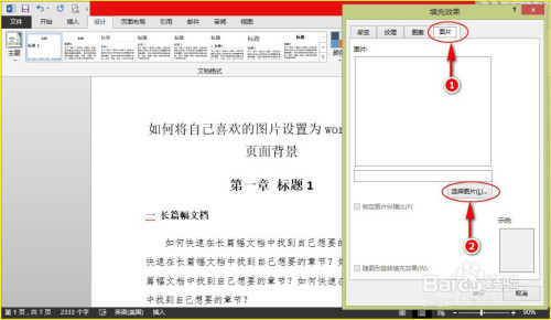 步调3:点击对话窗中的“图片”项进入其设置界面中,并单击其界面中的“选择图片”子项。此时会呈现“选择图片”对话窗。如图所示: