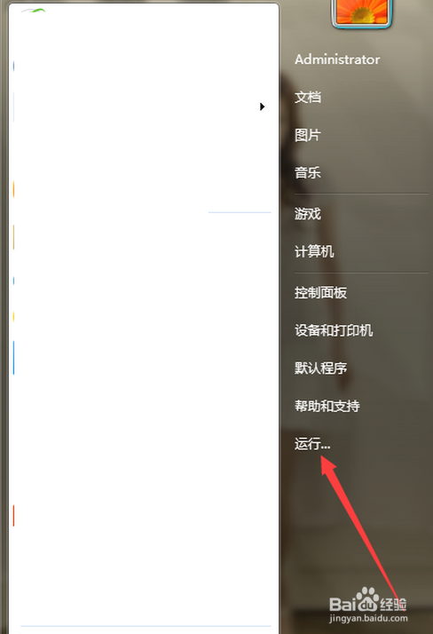 选择“运行”,打开运行窗口。如下图所示: