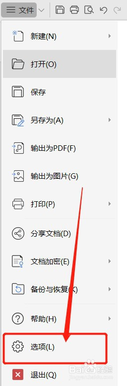 在文件的菜单里,点击【选项】