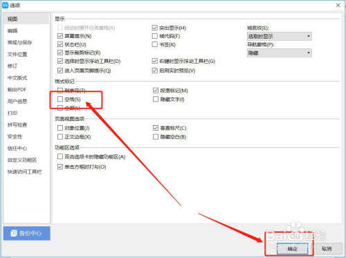 把【空格】勾选框去失落,点击下面的【确定】