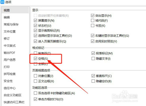 在视图的格局标识表记标帜里面,有一个【空格】的勾选框,可以看到这个勾选框是勾选上的