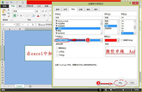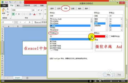 步调3:在对话窗“字体”界面中,我们点击“下划线”下方的下三角图标,这时会呈现扩展项。如图所示: