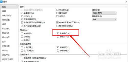 在视图的格局标识表记标帜里面,有一个【段落标识表记标帜】的勾选框,勾选框是默认勾选的