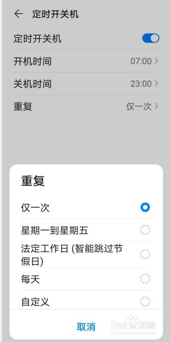 点击【反复】,选择按时开关机的周期次数。设置完当作。