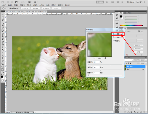 点击【滤镜】-【锐化】-【USM锐化】,弹出USM锐化设置栏;