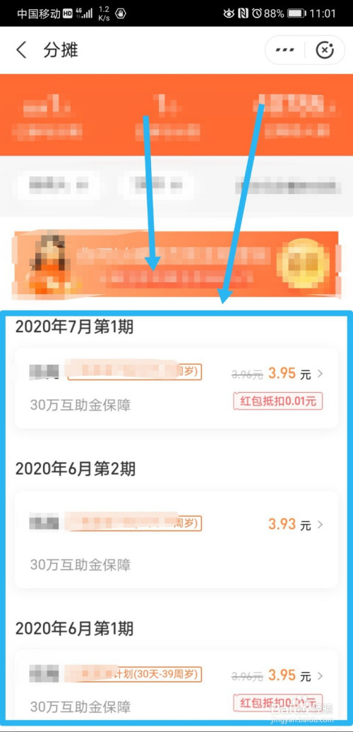 在彼此宝官方账号首页,可以看到小我加入大病合作打算保障信息,我们点击打算,进入详情页面;
