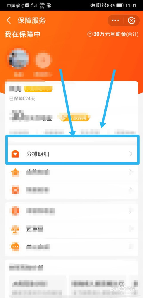 在保障办事详情页面,我们点击进入分摊明细页面;