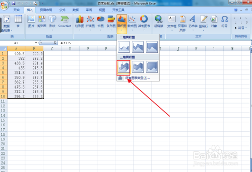第六步,插入三维面积图插入当作功。