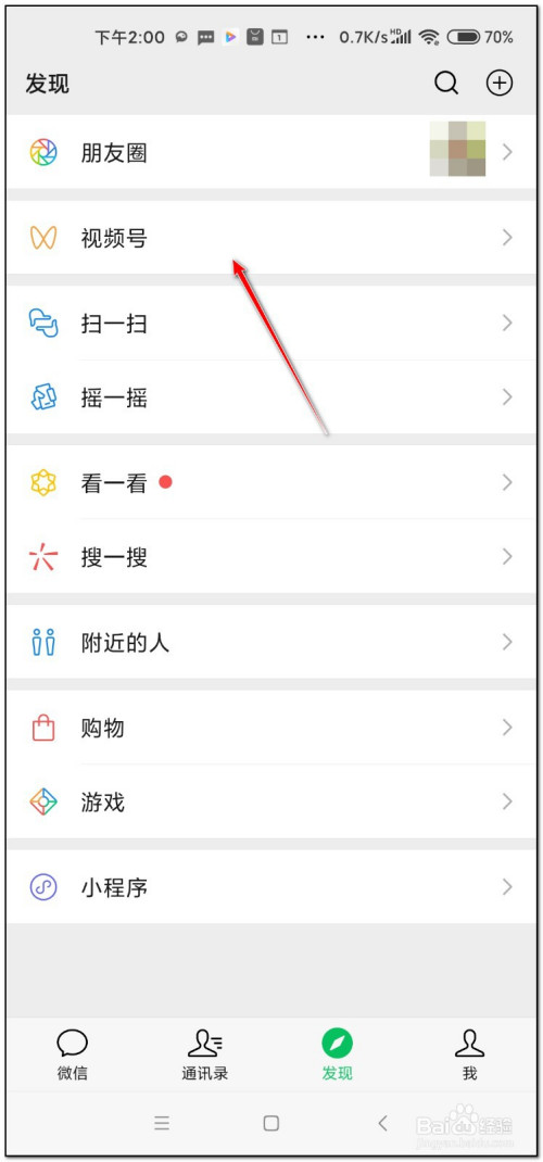 - 若是发现界面办理无视频号项目,请更新微信为最新版