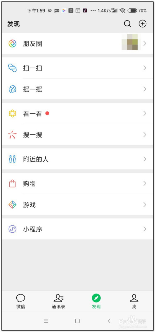 进入微信并登岸,可以看到此界面没有视频号项目