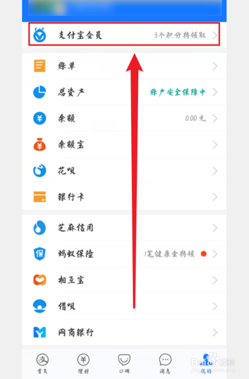 然后在我的页面点击【支付宝会员】选项。