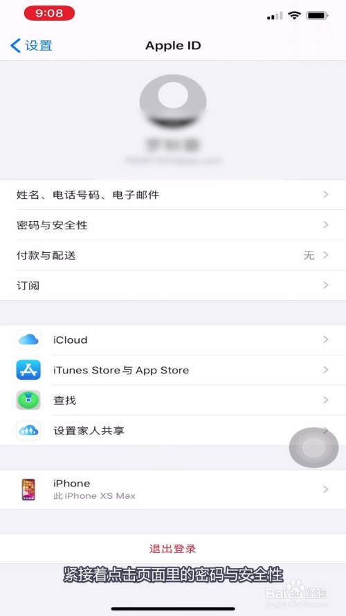 3、紧接着点击页面里的密码与平安性。