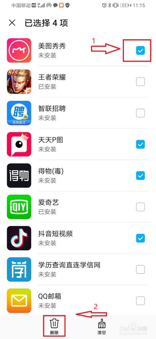 1)如图,在此页面可以看到本手机已经安装的应用程序