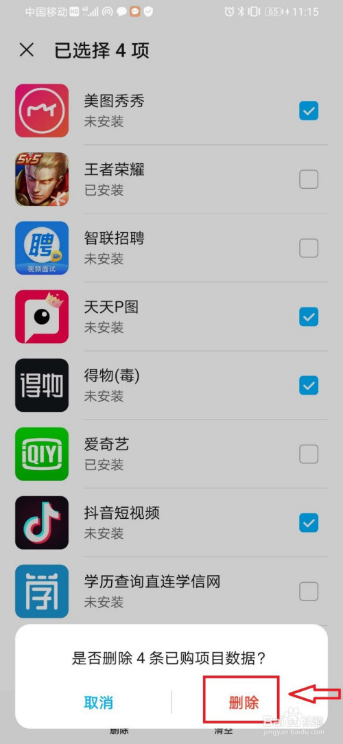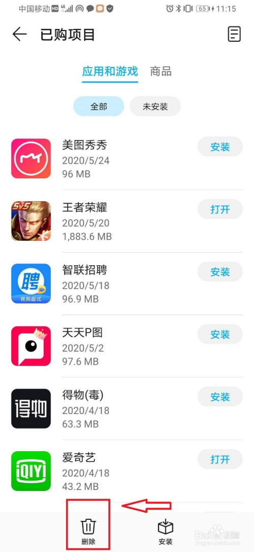 2)点击底部删除