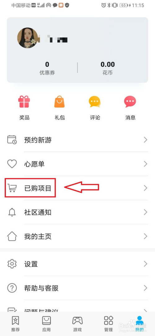 2)然后点击已购项目