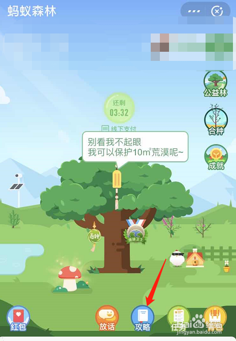 进入蚂蚁丛林页面之后,点击下图所示的“攻略”按钮。