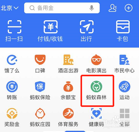 然后点击“蚂蚁丛林”。