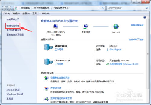 在"收集和共享中间"窗口下,其左边可以查找到"办理无线收集",单击进入此中