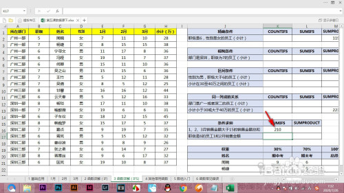 1.当前我们要求出123月份发卖额大于15的总和,里面是有两个前提的。