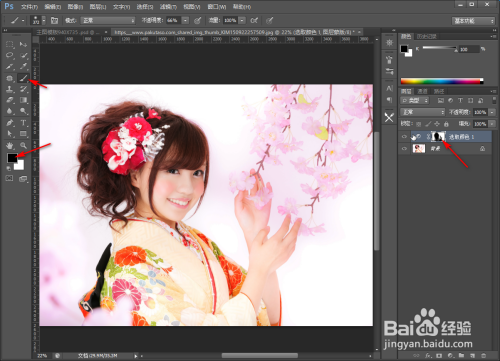 第五步,用黑色的画笔在可选颜色的蒙版大将人物的涂抹。