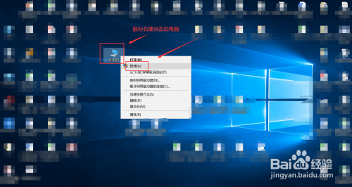 方式1、在win10操作系统下,鼠标右键点击此电脑图标,然后选择进入办理功能;