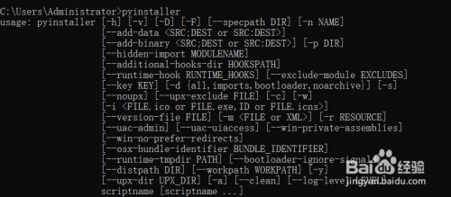 运行 >pyinstaller -h 会枚举出每个号令的具体用法