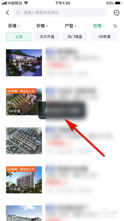 在上方,选择在售楼盘或已开盘的房源,如下图箭头所指位置。