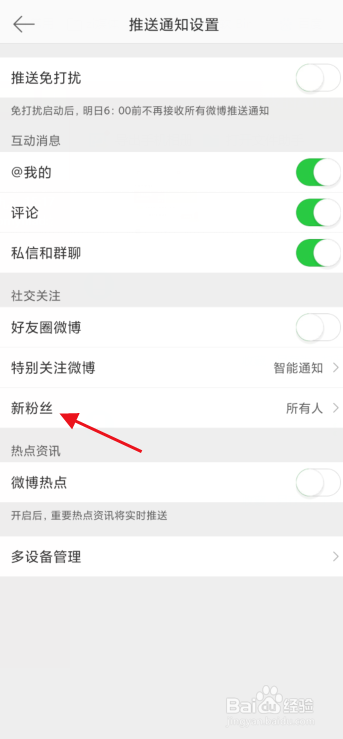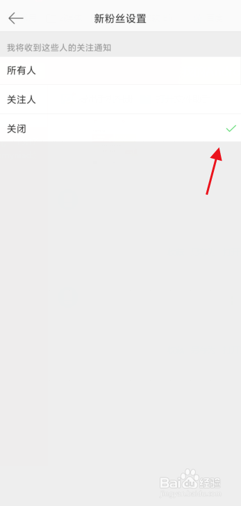点击选择封闭选项,当有新粉丝的时辰,就不会收到通知了。