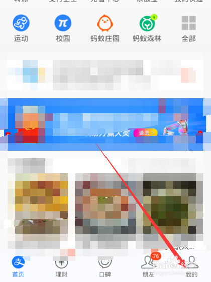 1、在支付宝窗口点击右下角的【我的】选项按钮。