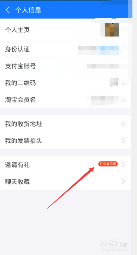 进入小我信息面板点击下方的【邀请有礼】选项。