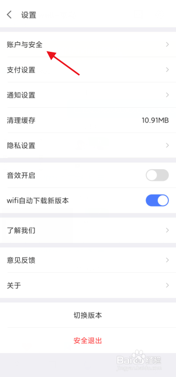 点击进入账户与平安。