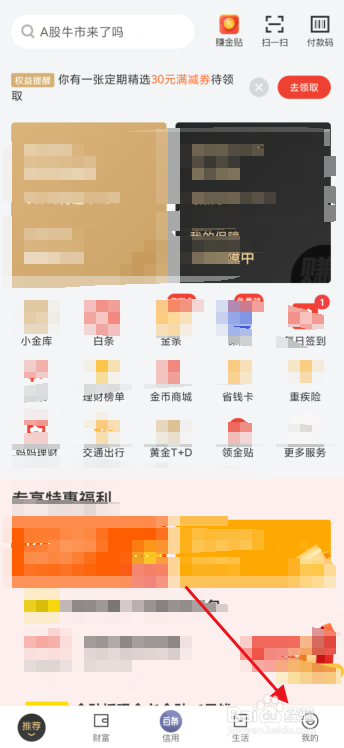 进入京东金融后,点击右下角的我的。