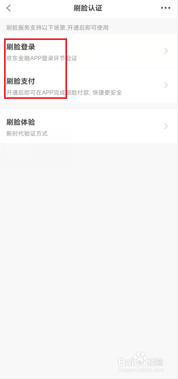 点击进入刷脸登录或者刷脸支付。
