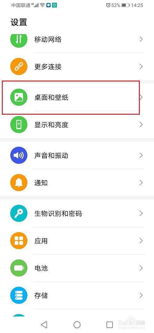 第一步进去华为手机设置之后,点击桌面和壁纸