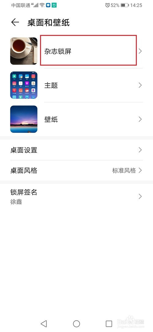 第二步在桌面和壁纸中,点击杂志锁屏