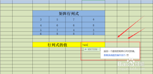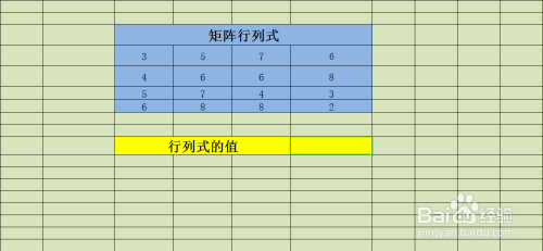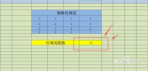 3、添加行“行列式的值”用于存放计较成果;