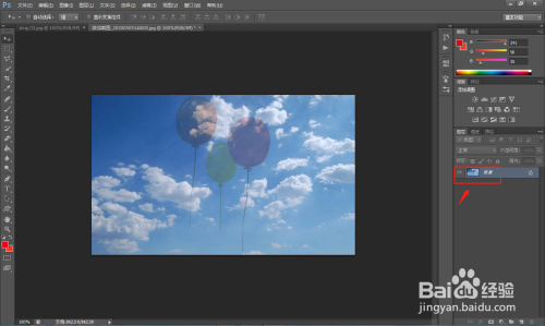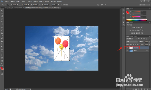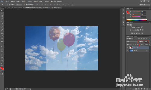 3.在右侧图层窗口中,调节上方图层的不透明度。