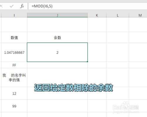 MOD函数的功能是:返回给定命相除的余数