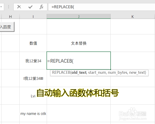 系统会主动输入函数名称REPLACEB和一个括号”(“