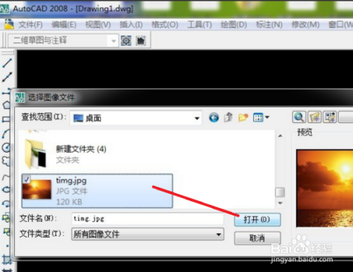 首先打开CAD软件,然后单击光栅图像参照。