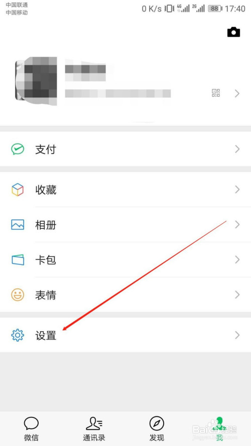 “我”的页面点开“设置”一栏。