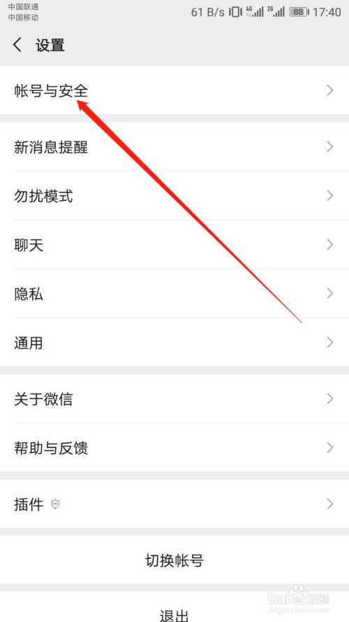 “设置”页面点开“账户与平安”。如图:
