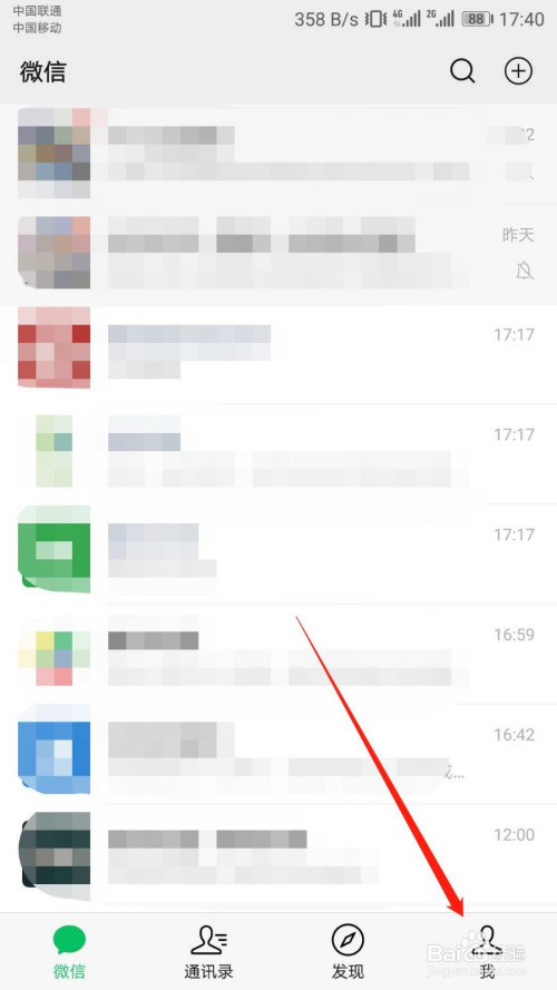“微信”本家儿页点击右下角“我”。如图: