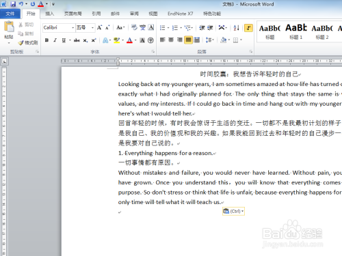 进入Word软件本家儿页,并随意书写一段文字;